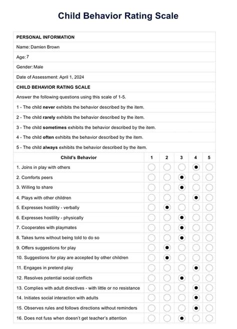behavior rating scale questionnaire pdf