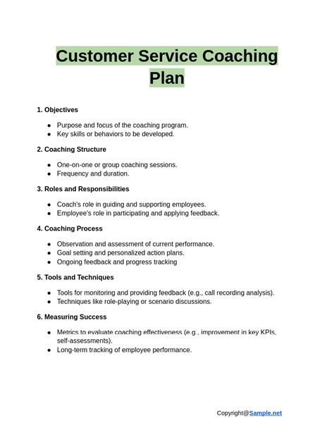 customer service coaching plan sample. There are any references about customer service coaching plan sample in here. you can look below.