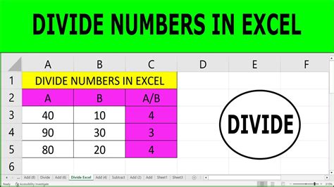 how to divide numbers in excel