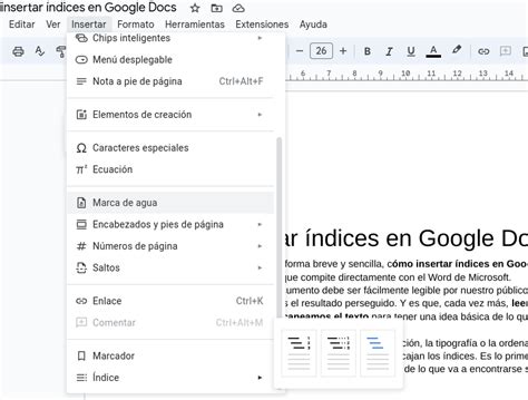 how to insert index in google docs