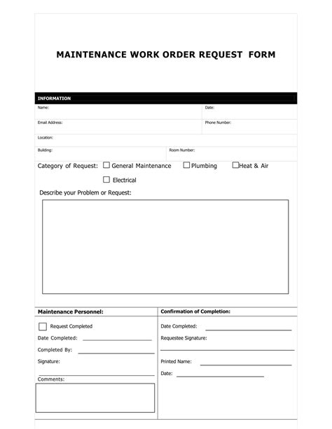 maintenance request form sample with answer