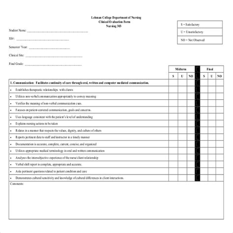 nursing student evaluation examples pdf