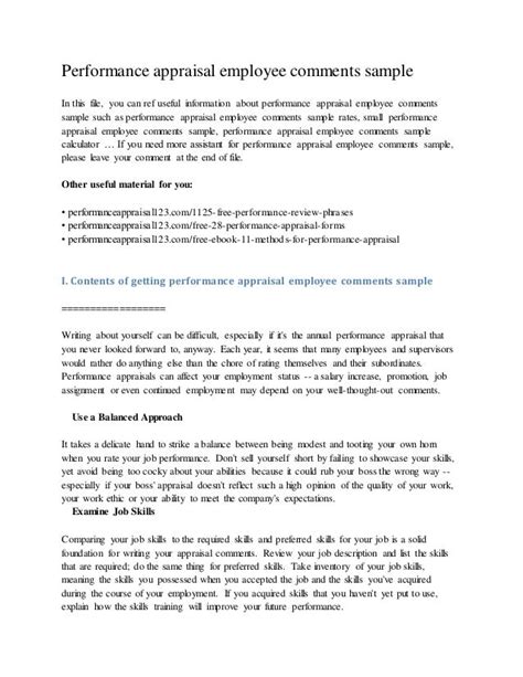 performance appraisal comments quality of work examples. There are any references about performance appraisal comments quality of work examples in here. you can look below.