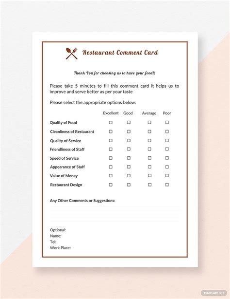 sample comment cards for restaurants. There are any references about sample comment cards for restaurants in here. you can look below.
