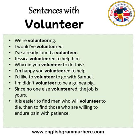 volunteering example sentence. There are any references about volunteering example sentence in here. you can look below.
