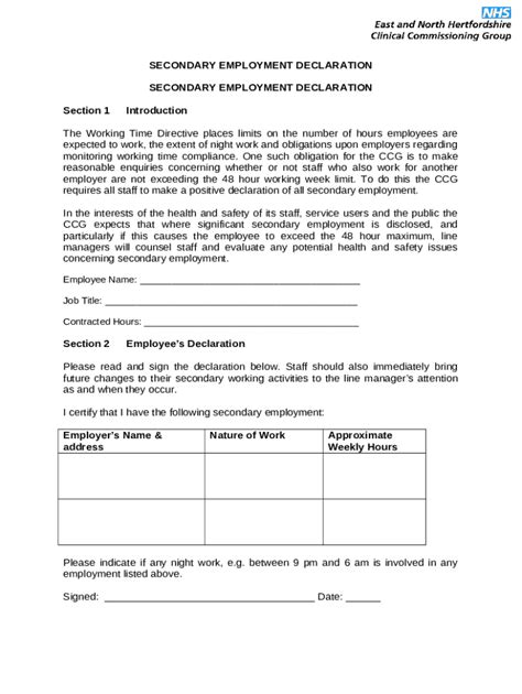 what is a secondary employment declaration. There are any references about what is a secondary employment declaration in here. you can look below.