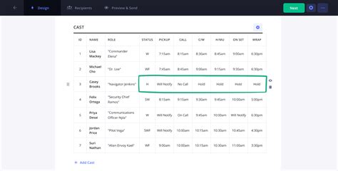 what is swhf on a call sheet